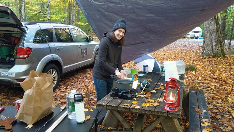 Cranberry Lake was a little cold, and it was the final night of camping. I was hoping to camp a few days, but I was also winging it a little. I wanted to stay flexible and adjust to what Terri wanted to do. It was Terri's first experience sleeping in a tent let alone in cold weather, but she handled it well. She was also a great help and super camping buddy. I know she also mentioned that I was a trooper for the amount of non-stop driving I did over the trip. But she really is also a super trooper too. I very much enjoyed her cooking!